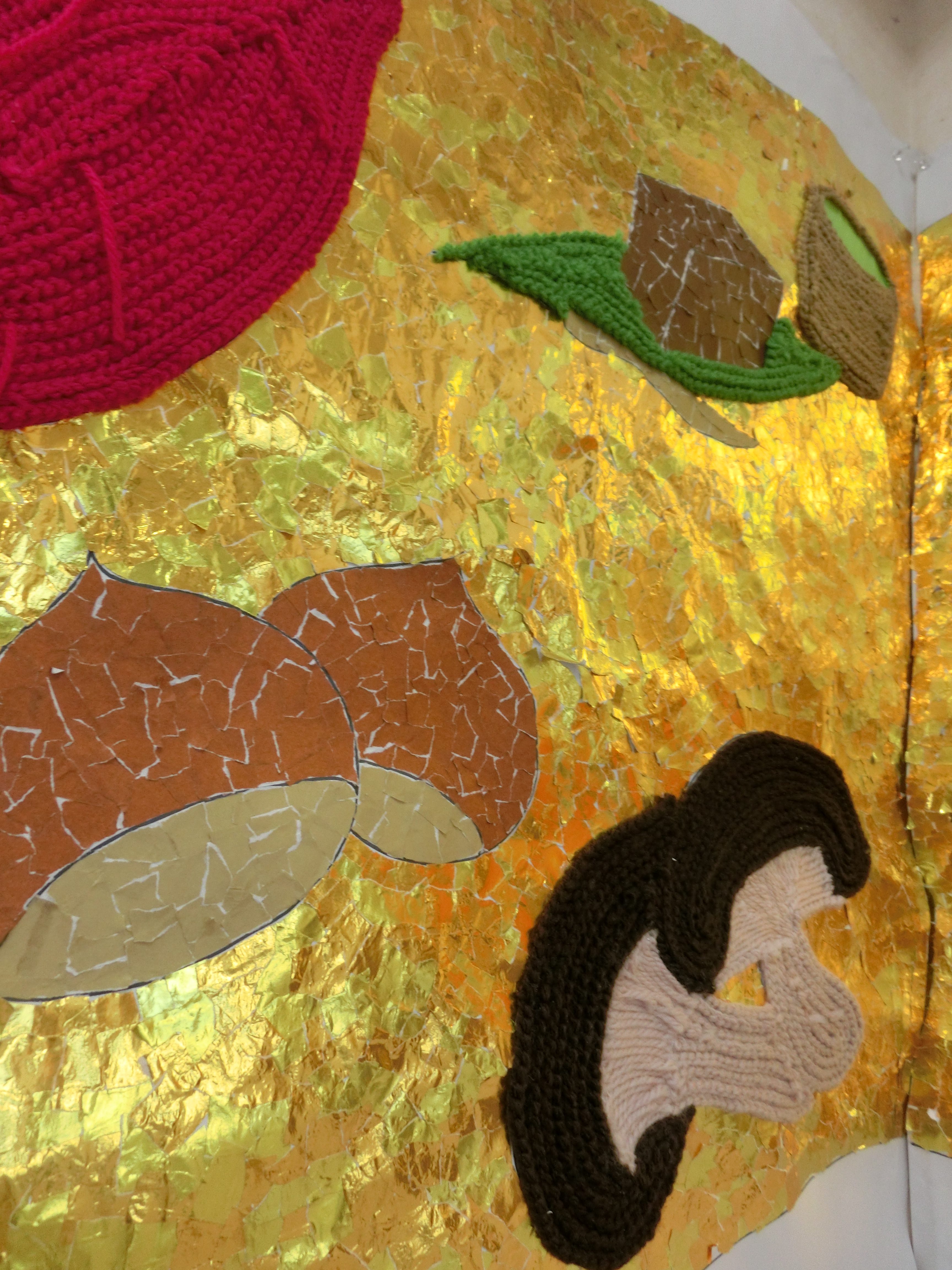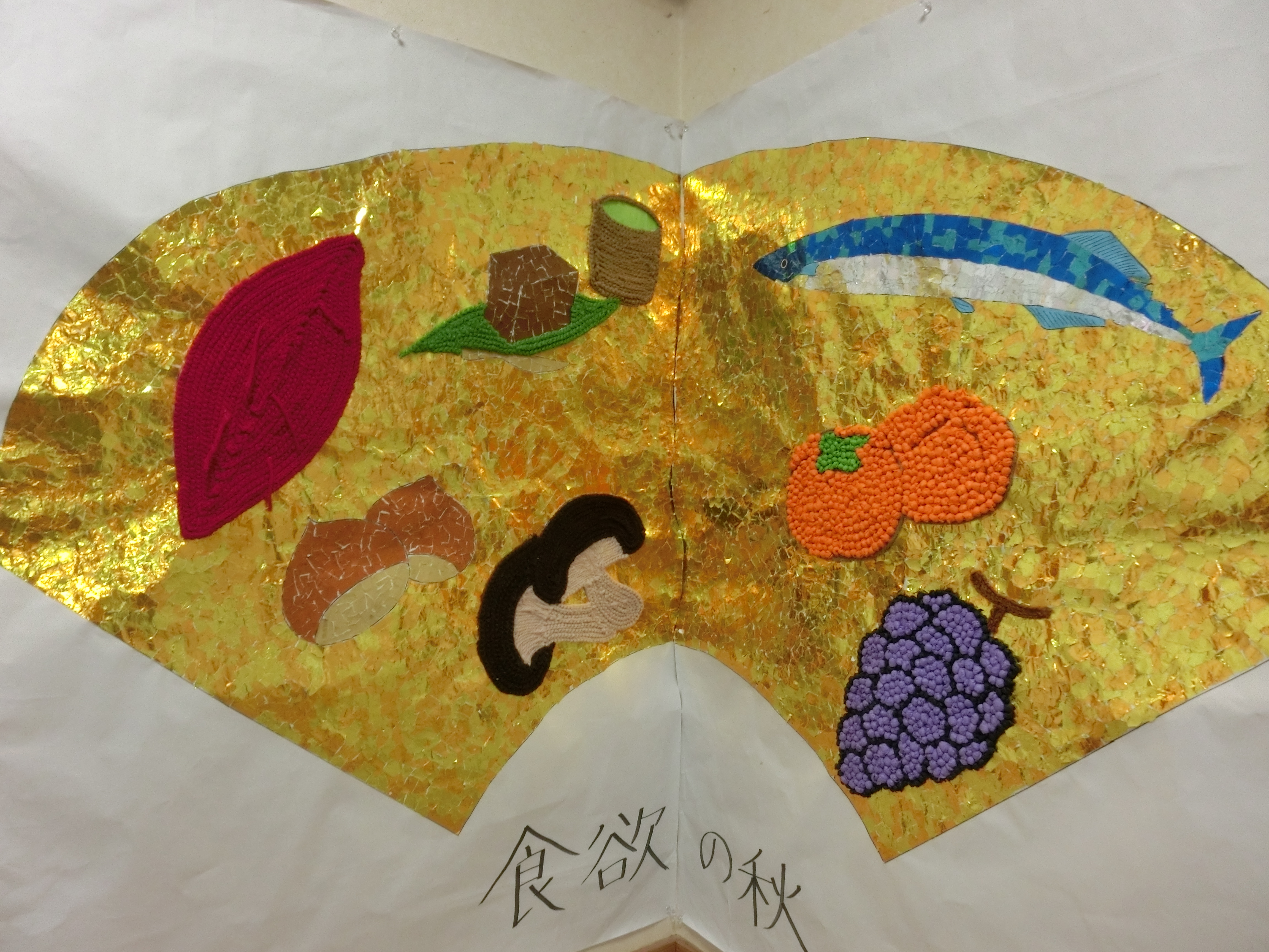 秋の味覚はが1つ1つ完成すると、「栗やね‼」「しいたけやね‼」「すごいね~」などの声が聞かれました。