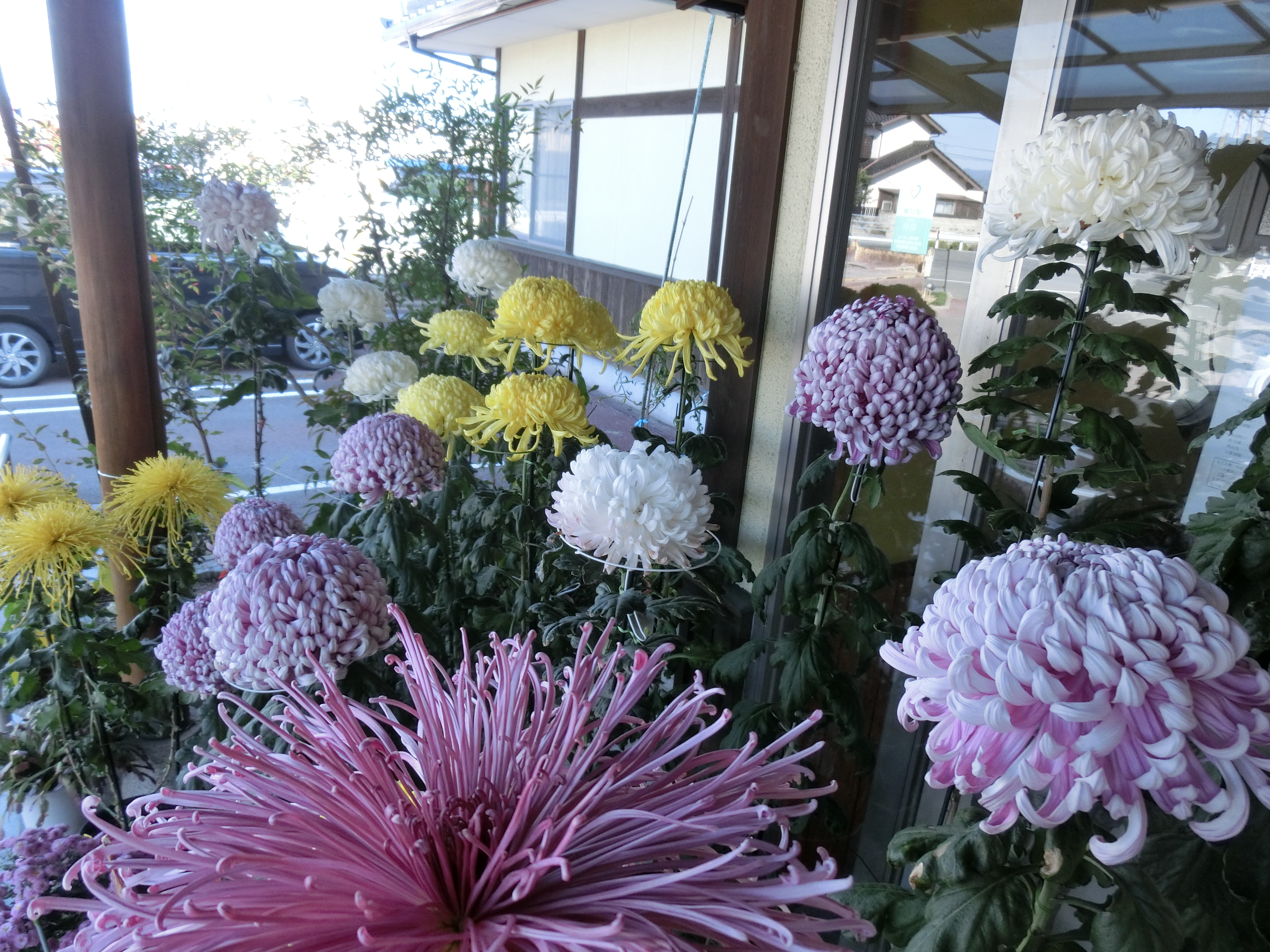 地域の住民の方が、「はぴねさんの玄関の菊がすごくきれいですね」と言われ鑑賞に来られます。
