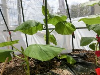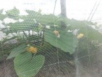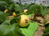 3つ人工授粉を行い「大・中・小」と均等に大きさは違いますが、カボチャは順調にすくすくと育っています。