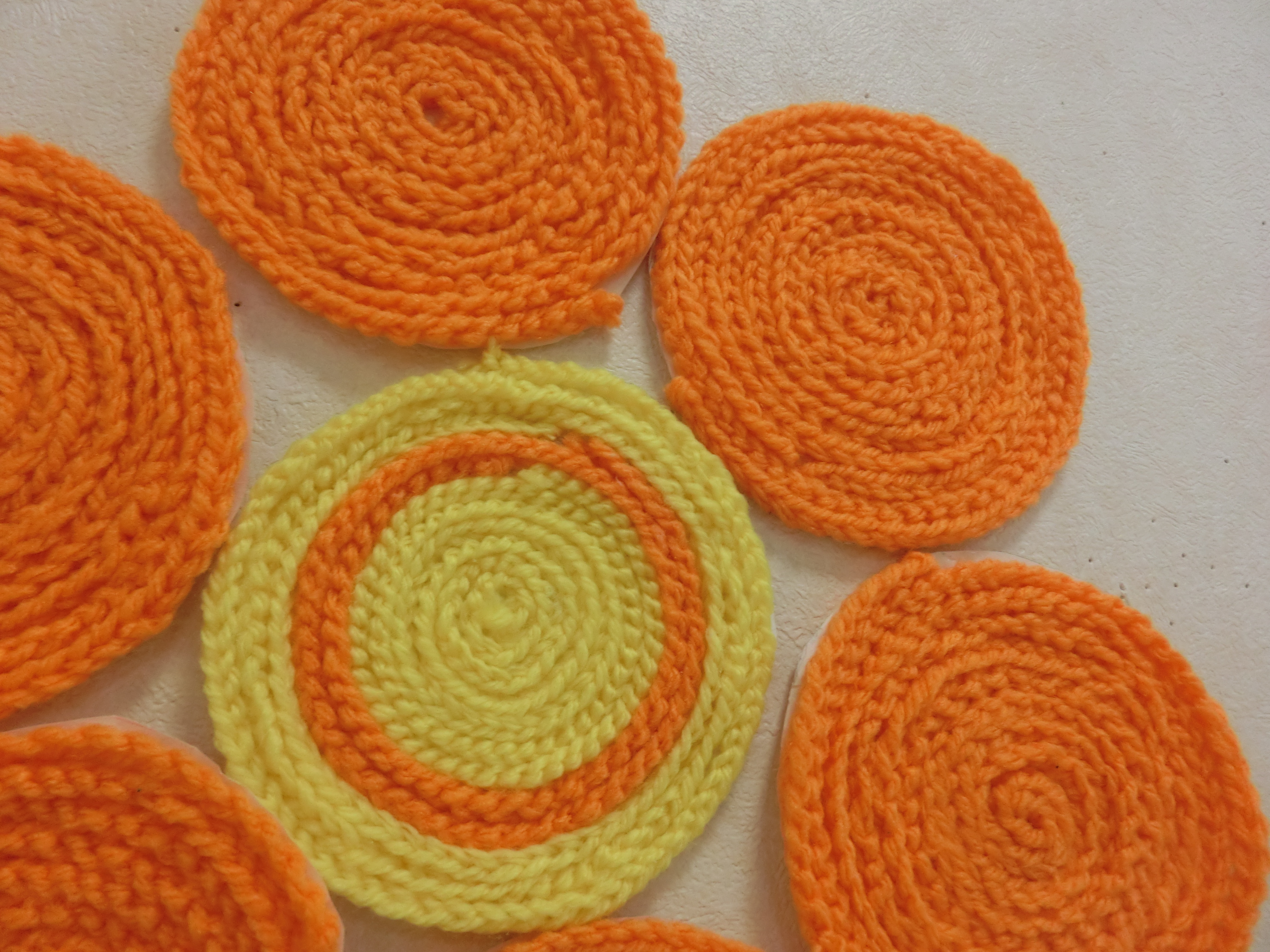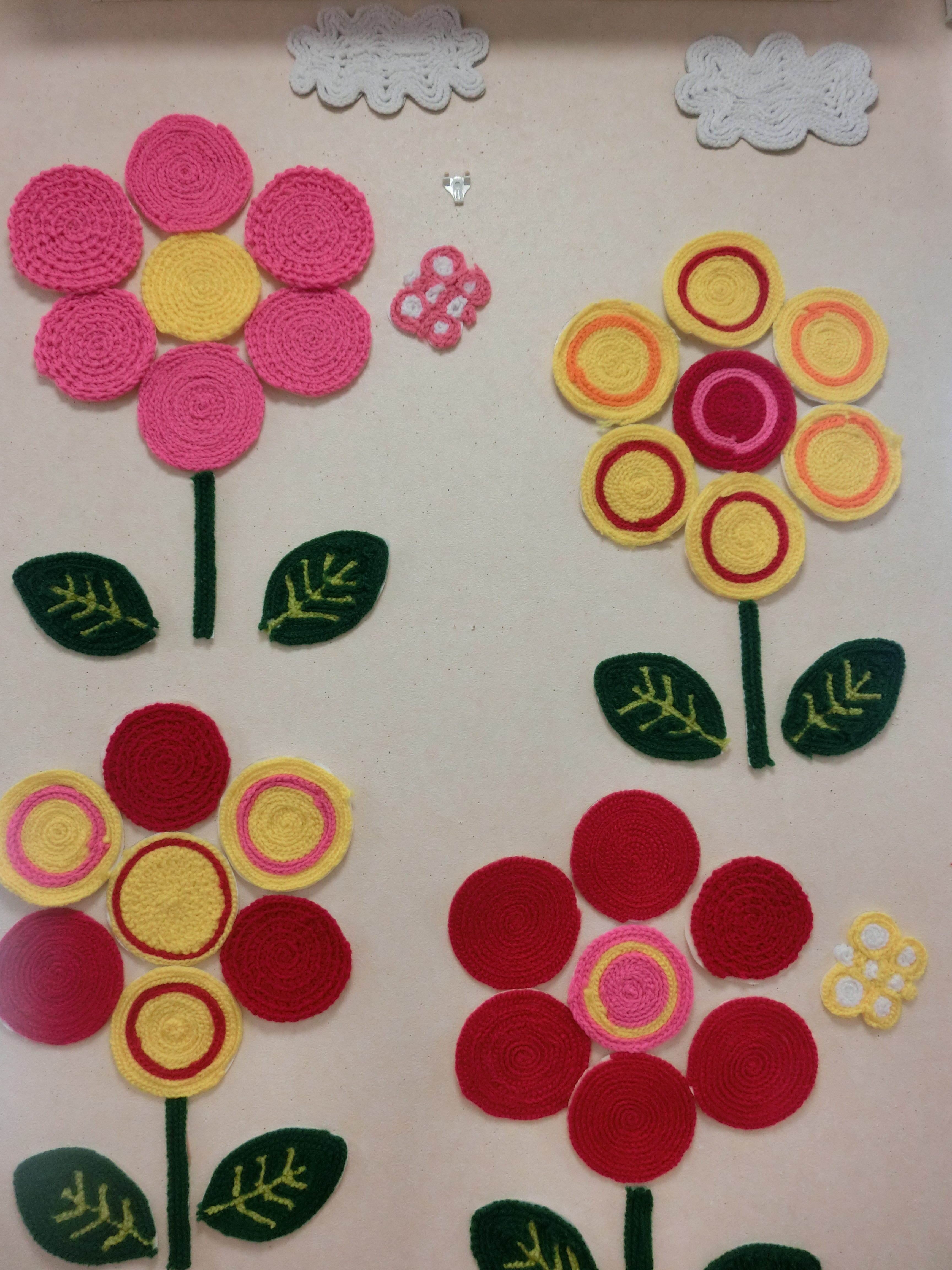 花は、毛糸で編んで作りました。