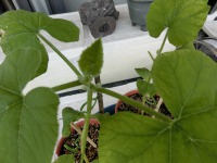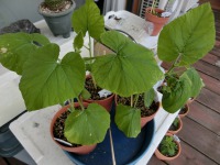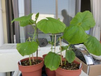 3月下旬に植えたカボチャは芽を出し、双葉が出てきた時はE様も一安心され、みんなで喜びました。