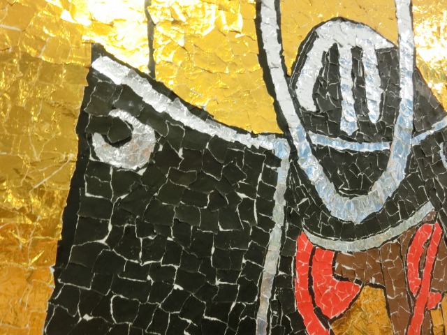 金と銀のゴージャスなかぶとの壁画が出来上がりました。