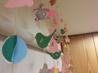 やわらかい桜のイメージと遊び心のさげもんで癒しの空間にしてみました。