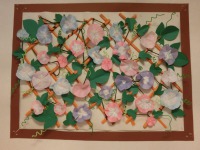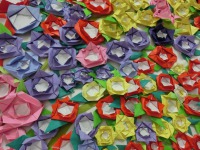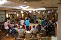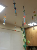 七夕では、貼り絵作成から始まり、お一人お一人に短冊を書いていただきました。