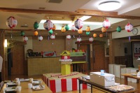 手作りのちょうちんやステージで空間作り、やきそばの香りで夏祭りを演出し、