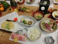 ◆秋刀魚の甘酢煮 ◆茶碗蒸し ◆秋野菜の天婦羅 ◆栗御飯 ◆豚汁 ◆抹茶大福