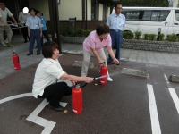 今回は消火訓練を実施し、消火器を使用する体験を行いました。