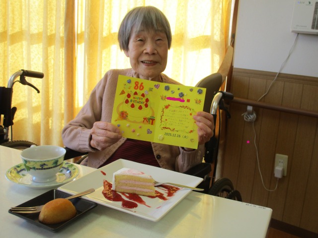 今日はご入居者様のお誕生日です(^^♪スタッフ渾身の手作りバースデーカードとケーキでお祝いさせていただきました‼フロアの皆様からのお祝いの言葉を受け、とても嬉しそうにされていました(⋈◍>◡<◍)。✧♡そして素敵な笑顔をカメラに向けてくださいました‼おめでとうございます🎊これからもますますお元気でいてください♡