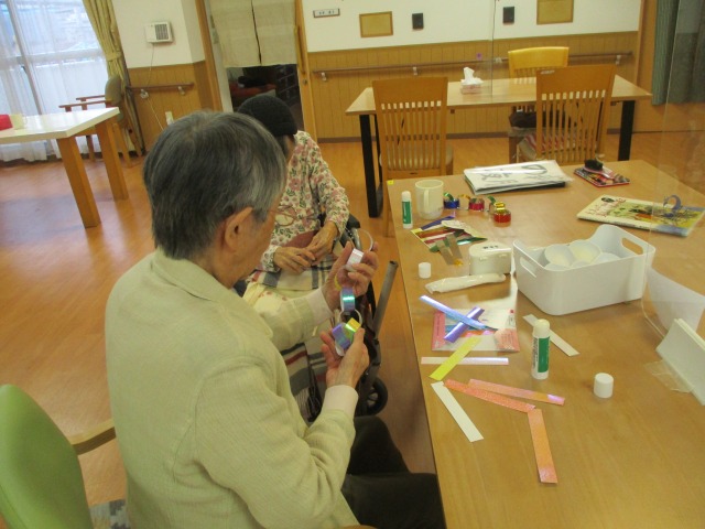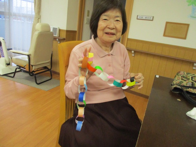 本日のレクの時間…来年の【運動会】に向けてご入居者様に輪っか飾りを作っていただきました(^^♪皆様とても手先が器用です🌟今日もたくさんの飾りが出来ました‼お手伝い、ありがとうございました(*^-^*)