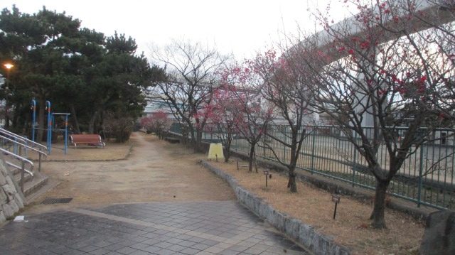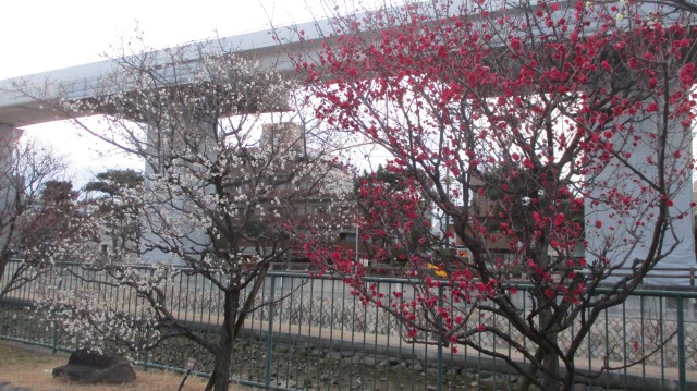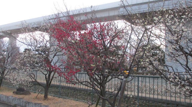 梅並木になっており、赤・白・ピンクと色とりどりの梅が咲きほこっていますよ(^^♪