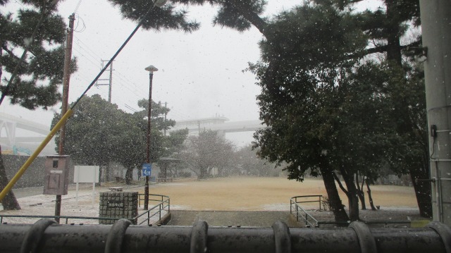 はぴね神戸魚崎のお隣の公演にもうっすら雪が…