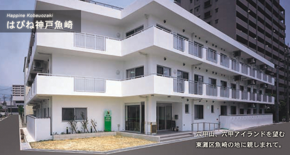 はぴね神戸魚崎は、六甲山と六甲アイランドを望む東灘区魚崎の地に誕生し、地元を中心としたご入居者に親しまれ7年が経過しました。ご入居者にとって、もうひとつの「家」としていつも笑い声の絶えない明るく居心地の良い“家庭的なホーム”を創りたいとの思いがひとつの形となりました。