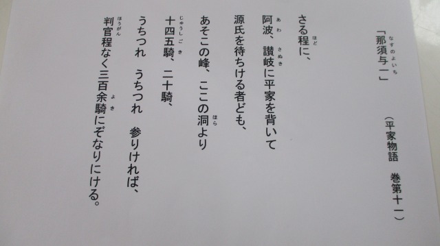 発声練習をしたあとに、平家物語の「那須与一」を朗読。とても難しいのに皆さんスラスラとハッキリと!!