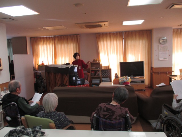新しいレクリエーション【音楽療法】の先生に本日来ていただきました(*^-^*)季節にぴったりのクリスマス🎄ソング🎵を皆様と一緒にたくさん歌いました‼先生に負けないくらい、大きく綺麗な歌声で歌ってくださるご利用者様も多く楽しい時間を過ごすことができました‼本日は午前中に訪問理美容もあり、いろいろあってめまぐるしい一日でした(*^-^*)