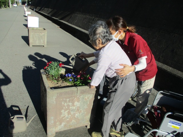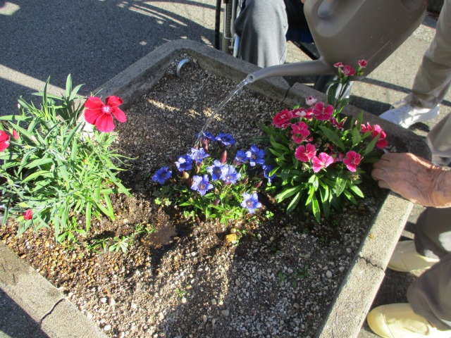 「気持ちいいねーー」とひなたぼっこをしながら、お花の水やりもしてくださいました。「大きくなーれ、大きくなーれ」と唱えながら・・(笑)きっともっとキレイなお花が咲きますね(≧▽≦)