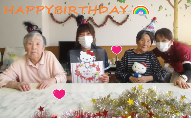 今日はキティちゃんの49回目のお誕生日です🎊1階フロアの皆様とスタッフで記念写真📸✨キティちゃんより可愛く撮れたかもしれません…(〃艸〃)ムフッ❤キティちゃんとご利用者様ともに、また1年お元気で楽しく過ごしていきたいです!!!