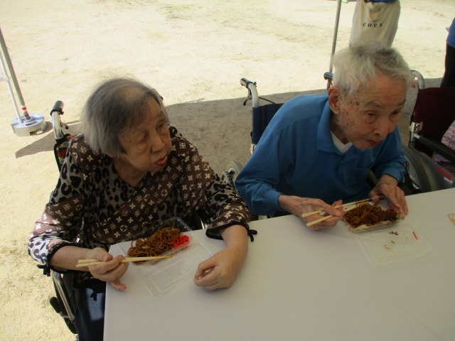 今日は隣接する住吉川公園にて、【魚崎南町5丁目🍁秋祭り】が開催されました!(^^)!コロナ禍でここ何年かお休みしていた夏祭りが今年【秋祭り】として復活しました‼ご利用者様と一緒にお祭りに参加し、やきそば、たこせん、かき氷など好きなものを買っていただきました(*^-^*)また、ご家族様と一緒にお祭りに参加されたご利用者様もいらっしゃいました‼屋台の味はサイコーですね🌟