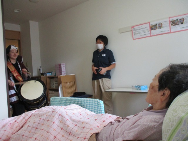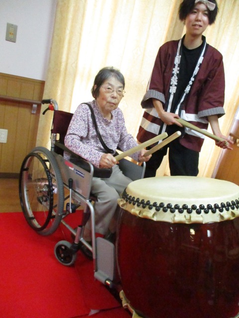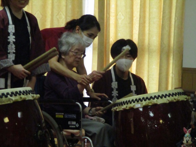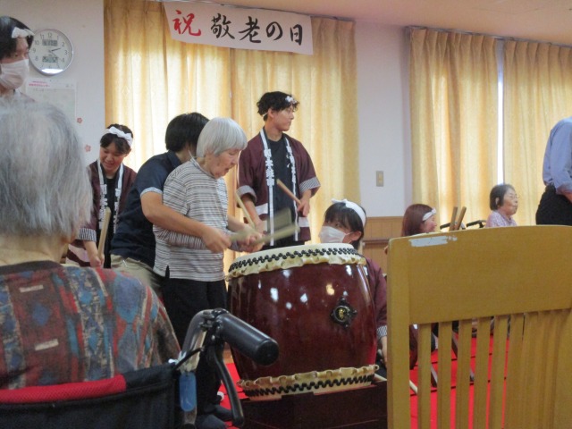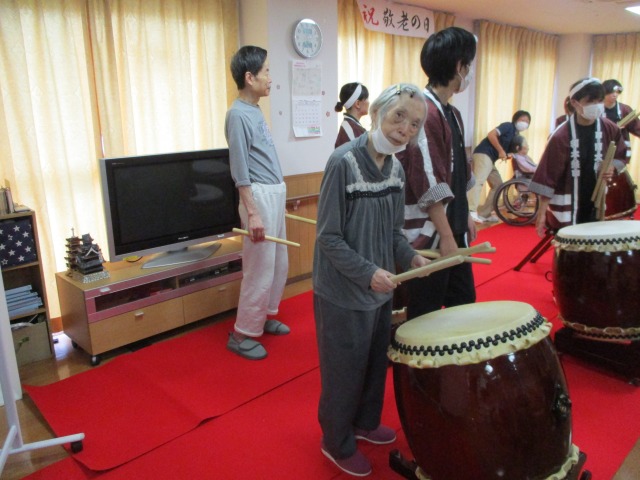 施設での敬老会開催も久しぶりで、太鼓の演奏に感動!!