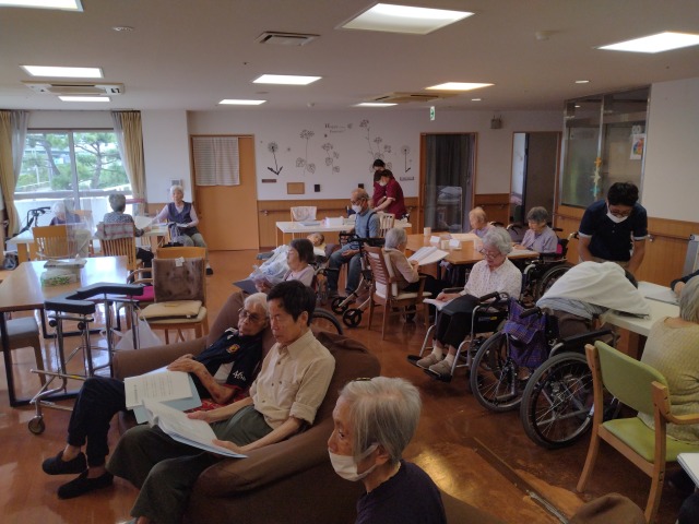 今日はスタッフによる【🎹ピアノ伴奏会】が行われました(*^-^*)たくさんのご利用者様が集まってくださり、懐かしい曲に合わせて歌ったり、名曲を聴いたりしました♬素敵な歌声がフロアに響き、和やかな時間が過ぎていきました(*^-^*)