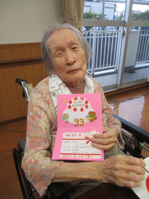 8月後半に一日違いでお誕生日を迎えられたご利用者様です(^o^)/フロアの皆様とスタッフでお祝いをし、バースデーカードを読んでくださって、にっこり微笑んでくださいました(*^-^*)本当におめでとうございます🎊これからもお元気でいてください‼
