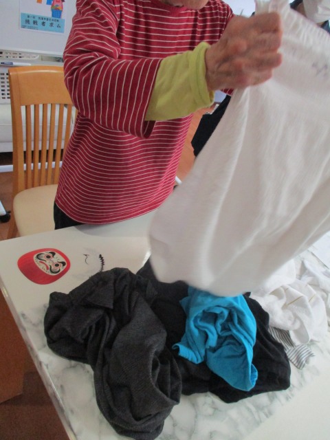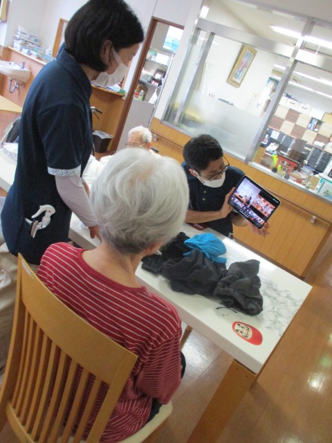 前回は【関西じゃんけん王決定戦】が行われましたが、本日は【関西洗濯王選手権】が開催されました(^o^)/入居者様の施設代表を選び、オンラインで他施設の代表者と熱い戦いを繰り広げました‼タオル、Tシャツ、靴下などの洗濯物をいかに早くきれいに畳めるかを競いました(*^-^*)惜しくも初回で敗退してしまいましたが、「楽しかった~‼」ととても喜んでいただけました♬