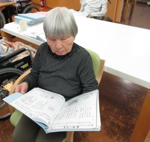 毎週土曜日はスタッフのピアノに合わせて皆で合唱をします♬今日もたくさんご利用者様が参加され、きれいな歌声がフロアに響いていました(^^♪懐かしい曲がたくさんあったようで、皆様スラスラと歌詞が出てきていました(*^-^*)