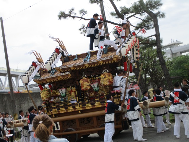 みなさん一斉に表へ出て、だんじりがやって来る前にスタンバイ!!うちわを持って、おしゃべりしながらその時を待っていました♬『ドンドン♬・・・』と太鼓の音が遠くから聞こえてきて、『来た来た~!!!」とだんだんと近づいてくるだんじりを見守っていました(*^-^*)はぴねの前で三礼してくださり、皆で手を振って見送りました(*^-^*)煌びやかなだんじりを目の前で見ることができて大迫力、大興奮でした!!!