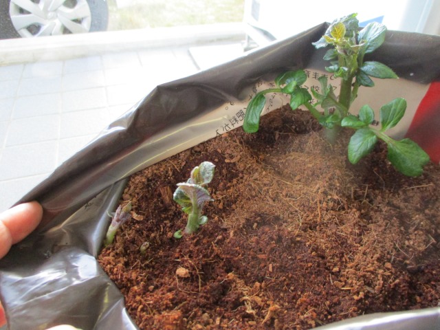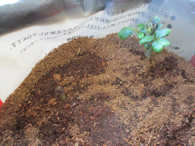 先日やっと1つ目の芽を出してくれたじゃがいも。2つ目はまだかなーとふとポテトバッグを覗いてみると・・