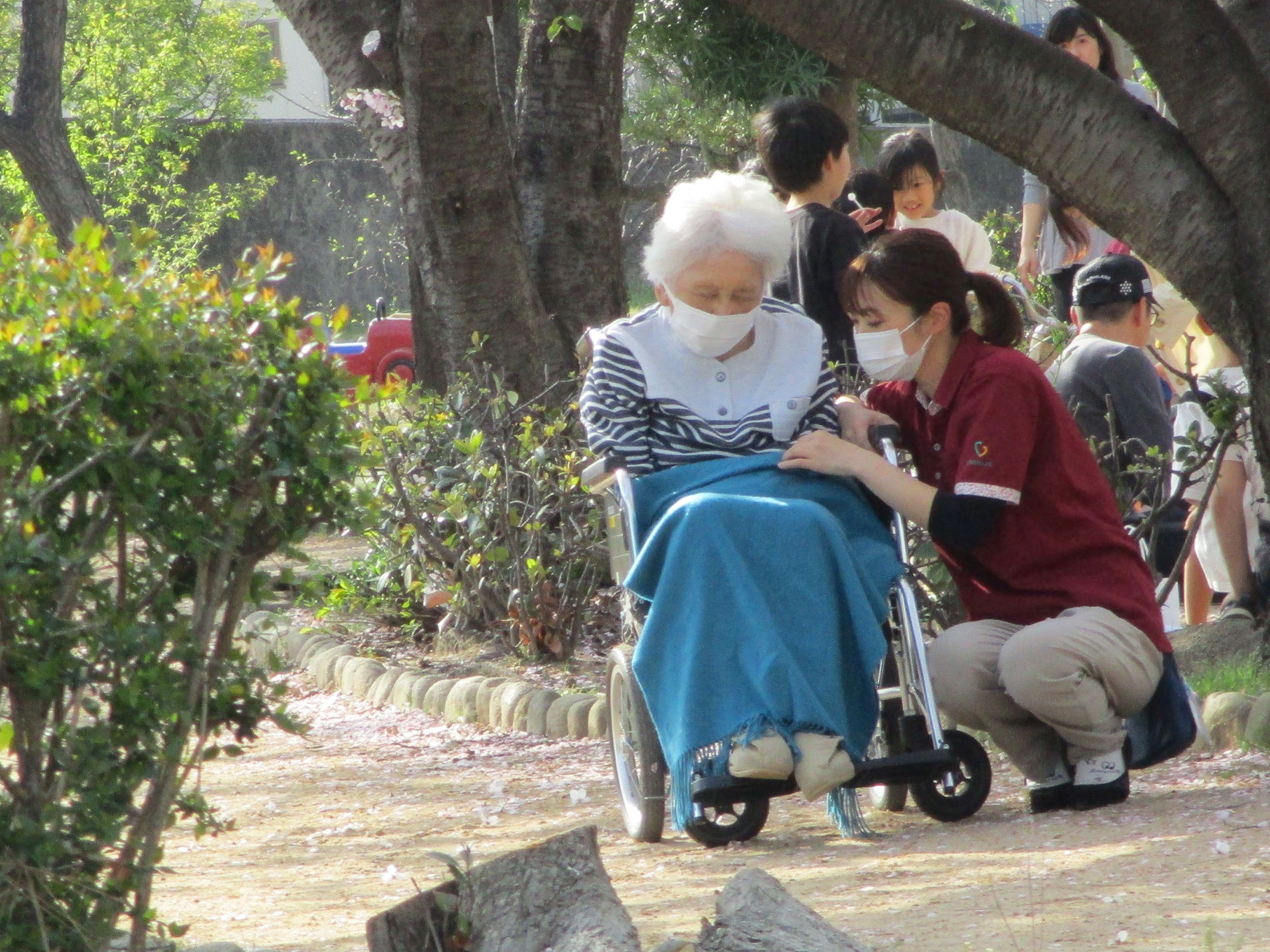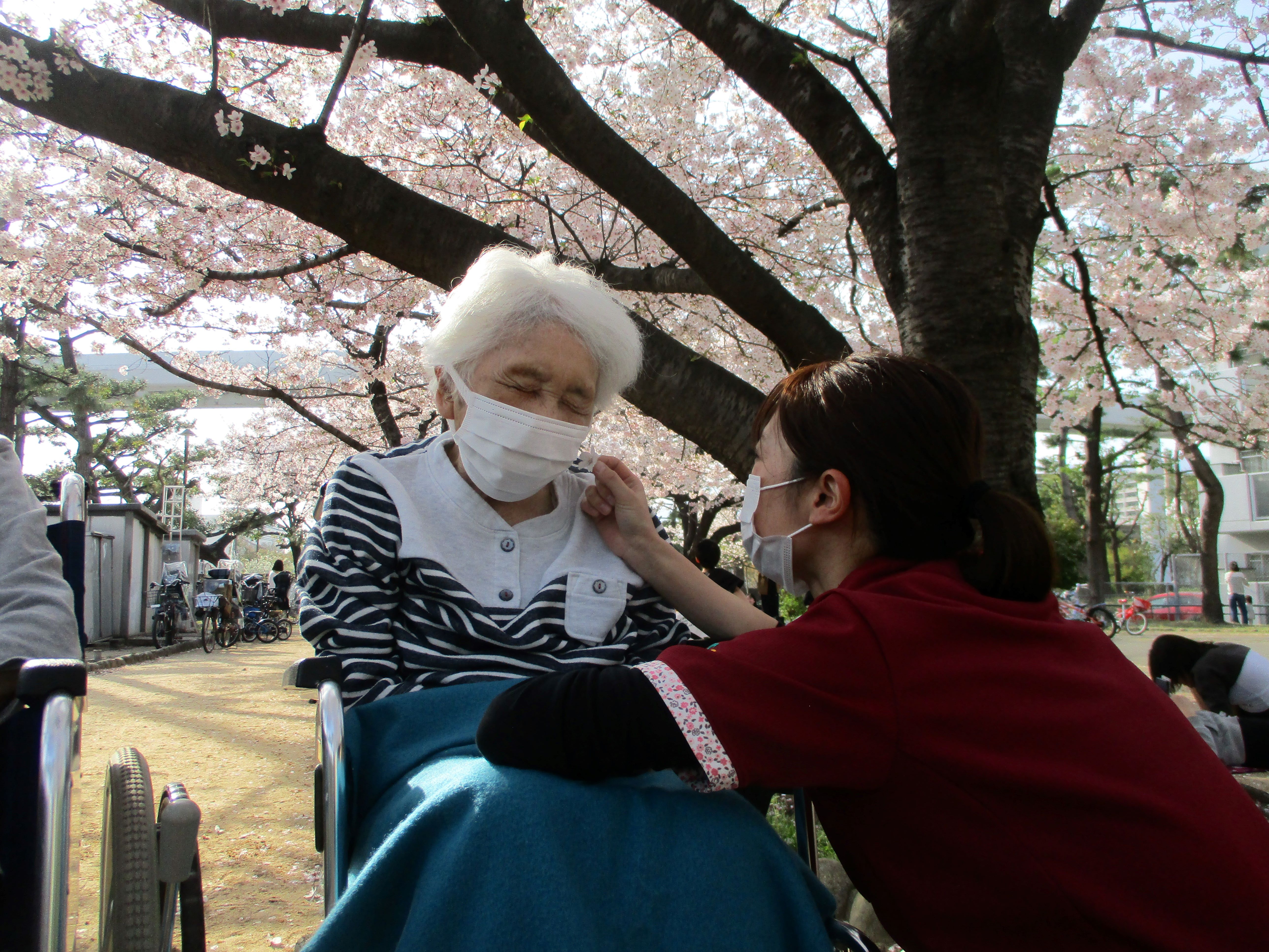 今日は普段なかなか外に出られない方がお花見をされました‼夕方前の少し涼しい風が吹くころ、スタッフと一緒にお出かけ♬「気持ちいいわ~」とおっしゃっていただきました(*^-^*)外の空気や風を感じながら、ゆっくりとお散歩ができました🌸