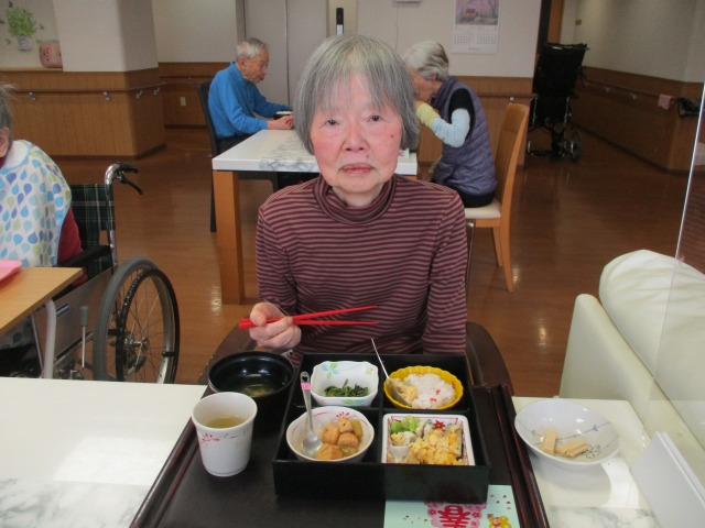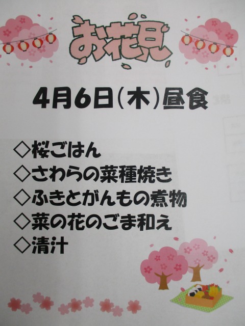 本日のお昼ごはんは【お花見弁当】です(^^)/食器や器が変わると、なんだか雰囲気も変わり今日の昼食タイムはなんだかいつもより皆様楽しそうにみえました(*^-^*)