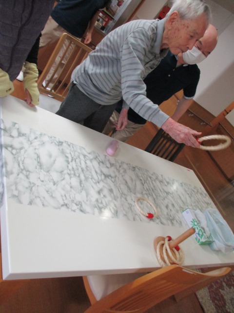 今日は輪投げをして身体を動かしました(^^)/ 最初はなかなか入らなかったのに、一投一投うまくなっていくことにビックリ!