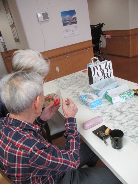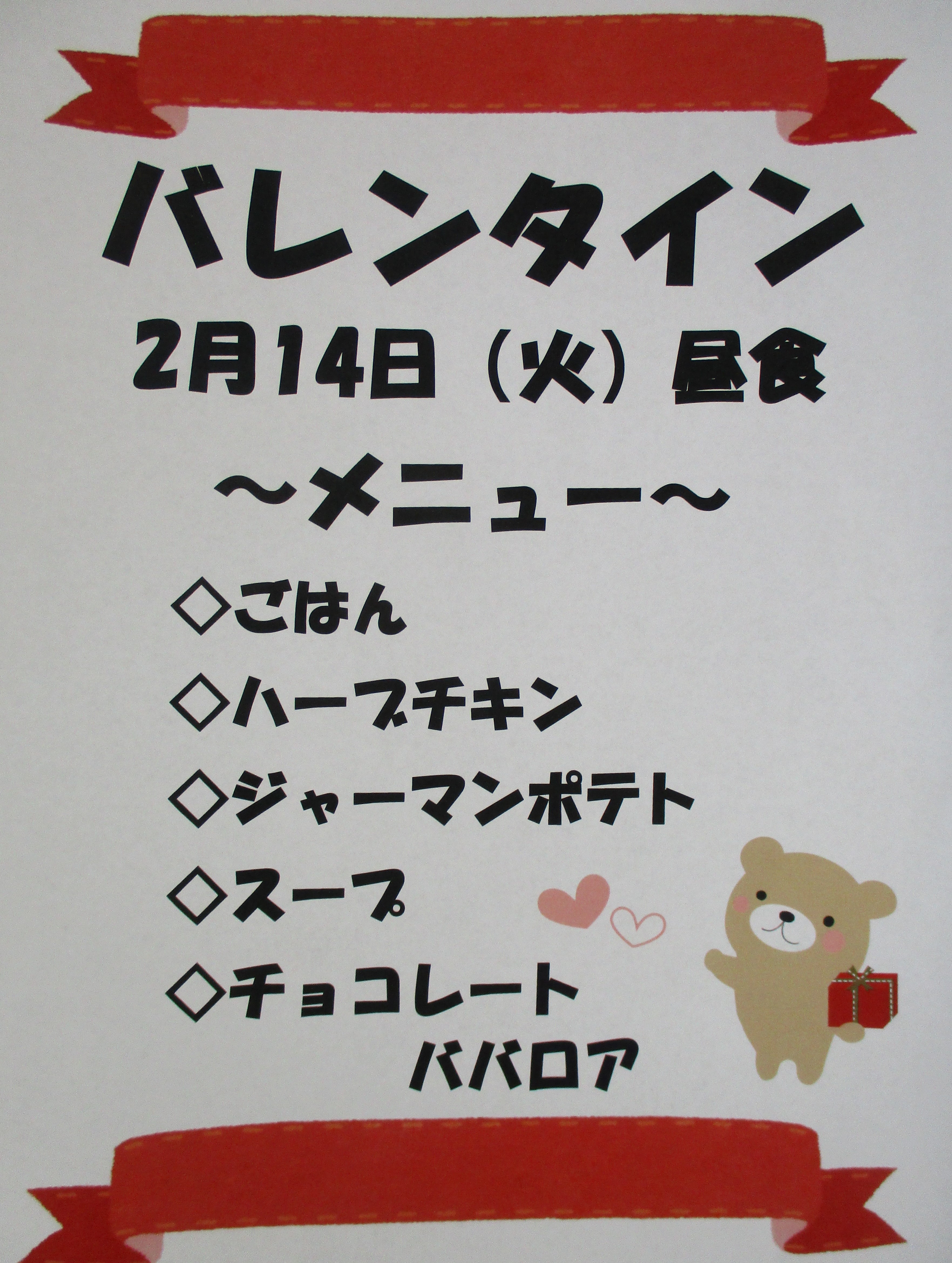 今日はバレンタインデーですね(◍>◡<◍)♡おやつ前に皆様がお集まりのところでささやかなスイーツをプレゼント🎁男性のご利用者様は皆様にっこりされとても嬉しそうにされていました(*^-^*)今日の昼食もバレンタインメニューでした‼特別な1日になってもらえたでしょうか( *´艸`)