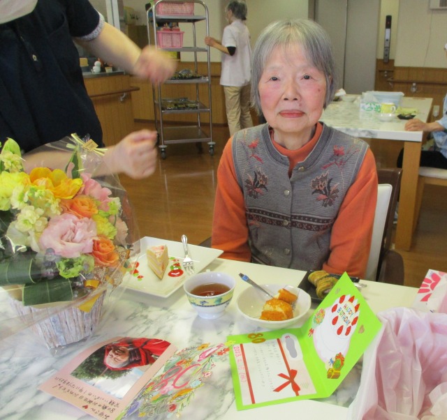 今日はご利用者様のお誕生日です\(^o^)/🎊ご家族様が面会に来てくださり、談話室で素敵なお誕生日会をされました🎂🌟とても楽しい雰囲気にスタッフもお邪魔し、写真を撮影させていただきました📸おやつの時間にはご利用者様とスタッフでお祝いをさせていただきケーキを召し上がられました(*^-^*)