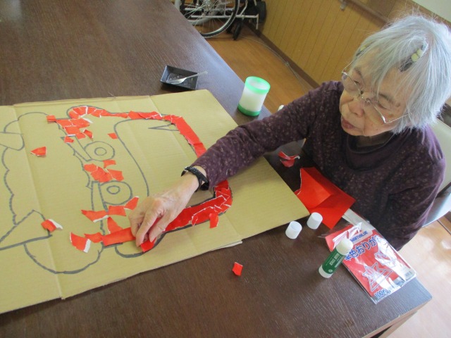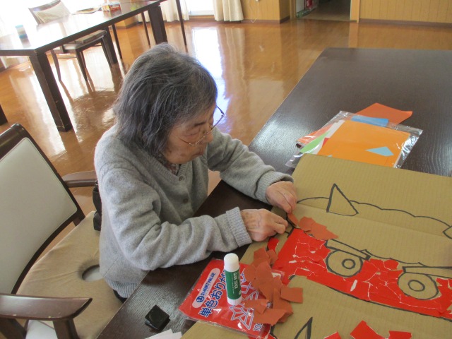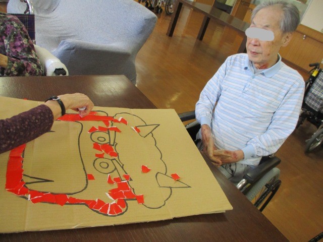 明日から全国的にますます寒くなるみたいですね(;’∀’)寒さ対策、体調管理に気を付けていきたいです(`・〈〉・´)ゞさて、今日もフロアでは手作り鬼ボードの完成に向けて皆様頑張っておられます!!出来上がりが楽しみですね(*^-^*)
