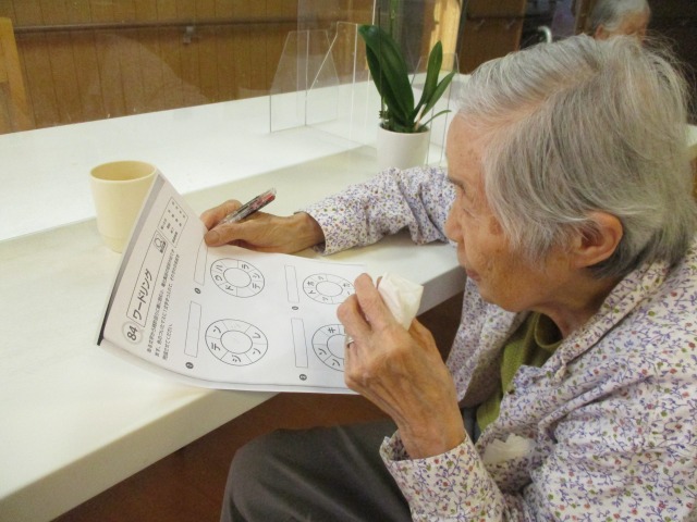 本日は3階で言葉ゲームの脳トレを行いました(^^)v