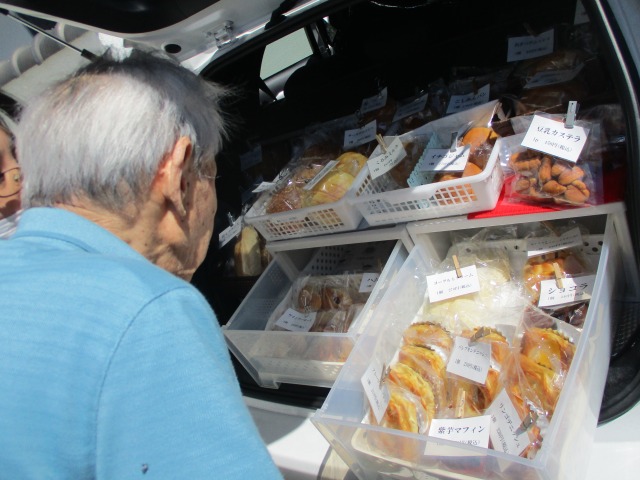 今日は【移動パン屋】さんが来てくれました(*^-^*)パンがお好きなご利用者様が多いので、「パン屋さんが来てますよ~‼」と誘いに行くと「ほんと?行く行く~!」と嬉しそうな顔をされパンを選んでおられました(*^-^*)味も好評で、リピーターが増えています☆