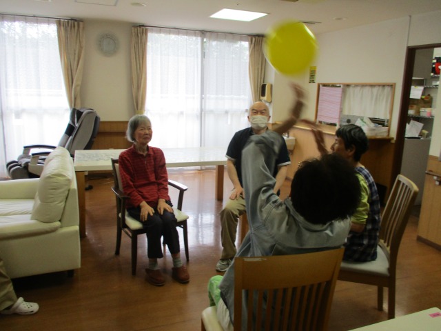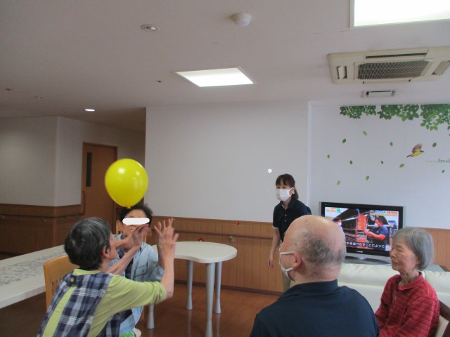 今日はあいにくの雨ですね…(´;ω;‘)こんな日は皆さまで室内で出来るレクリエーションを行いました‼風船でバレーボール‼風船を落とすまい‼と白熱し過ぎて、終わった時には「あ~‼暑いわ~‼」といい運動になりました(*^-^*)そのあとティータイムで美味しいお茶をいただきました(*^-^*)