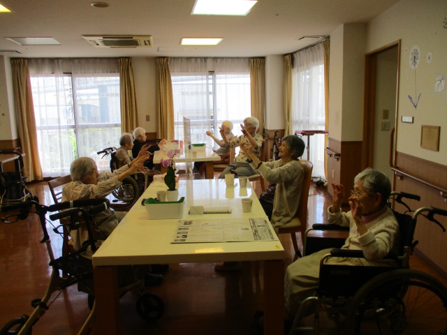 はぴね神戸魚崎では、昼食前にフロアで、四肢体操と嚥下体操を行います(#^.^#)