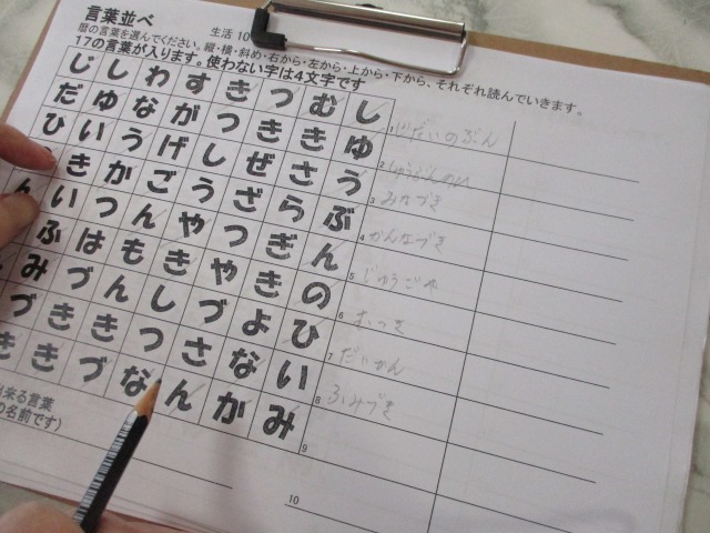 おやつの前に今日も日課の脳トレに挑戦中です(*^-^*)最近、スタッフもご利用者様の影響を受け漢字の脳トレを始めたそうです(〃艸〃)このあと、すべての言葉を探しだしスタッフと一緒に大喜びしました\(^o^)/