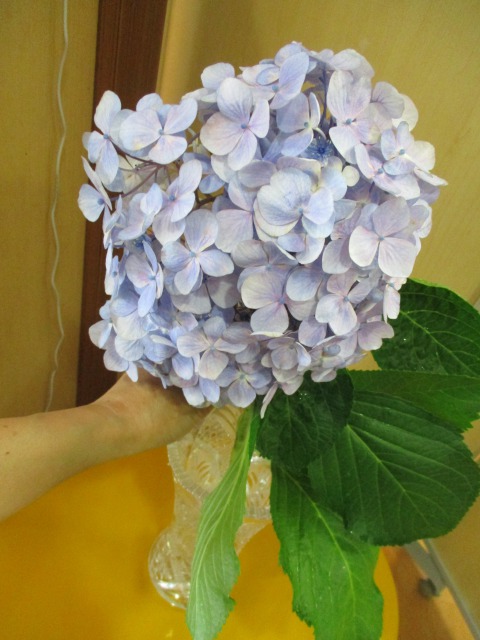 「ちょっと部屋に来てくれる?」とご利用者様からお声を掛けていただき、お部屋に訪問すると「これ、飾ってくれる?}ときれいな紫陽花の切り花をいただきました(*^-^*)さっそく花瓶に生けて玄関に飾らせていただきました‼いつもお花の事を丁寧に教えてくださってありがとうございます(*^-^*)