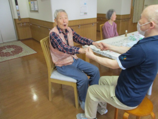 おやつの後、スタッフとご利用者様の元気な声がフロアから聞こえてきました(*^-^*)ご利用者様と身体を動かして体操をしているところをパチリ✨📸私も事務仕事の合間に体を伸ばしたりストレッチをしたり…(^_-)-☆毎日のトレーニングは欠かせませんね❣