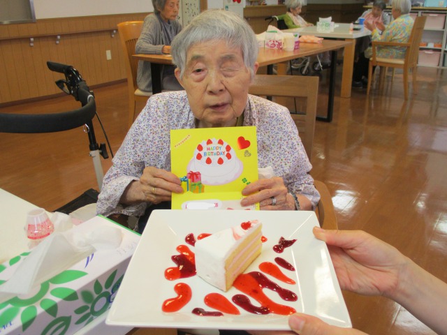おやつの時間にケーキとカードのプレゼント🎁があり、皆でHAPPY☆BIRTHDAY✨🎂を歌いました(*^-^*)これからもますますお元気でいてください!本当におめでとうございます❣