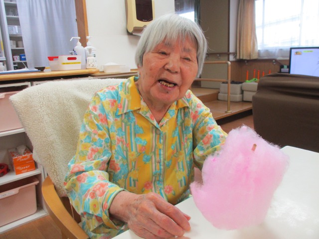 すっきりしないお天気が続きますね💦こんな日はお散歩にも行けないので、フロアで【わたがし】イベントを行いました(*^-^*)甘くて懐かしい味の綿菓子を皆様、とてもいいお顔(*^-^*)をされ、召し上がられました♡これからもご利用者様の喜んでいただけるイベントを開催していきたいと思います☆彡