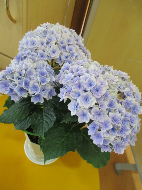 今日もすっきりしないお天気ですね💦エントランスに【紫陽花】のてぬぐいをタペストリー風にして飾ってみました(*^-^*)季節のお花の【紫陽花】もきれいに咲いています❣肌寒い気温ですので、皆様体調崩されませんように(*^-^*)