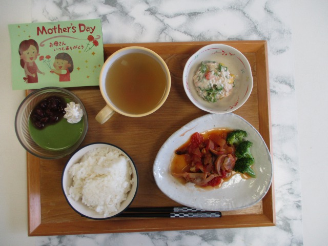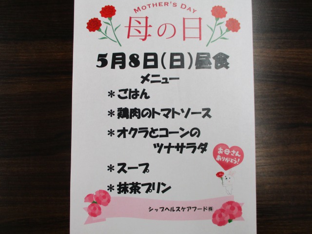 今日5月8日は母の日ですね!! お昼ご飯はもちろん母の日メニュー!! 皆様おいしそうに召し上がっていました(^^)/