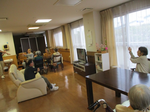 今日も日課のお食事前の体操を行いました‼腕を伸ばしたり、屈伸をしたり、皆様スタッフの掛け声に合わせてしっかりと身体を動かしてくださいます(*^-^*)口腔体操では唾液の分泌を促すマッサージや、発声練習を行い、喉を広げて誤嚥を防ぎます。お食事もおいしく召し上がられました(*^-^*)