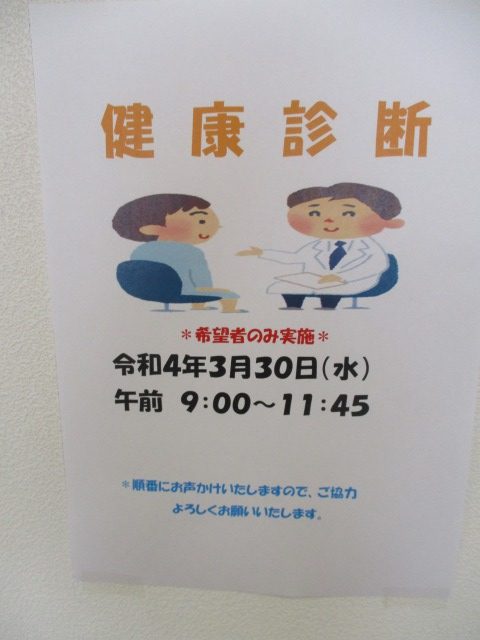 暖かく、とてもいいお天気☼の今日は、年に一度の【健康診断】の日でした(*^-^*)順番に採血、心電図、胸部レントゲンなどの検査を行いました‼採血は苦手なご利用者様もいらっしゃって、不安そうなお顔をされていましたが、検診スタッフの方や職員が笑顔で寄り添い無事に実施することができました(^^♪皆様、検診が終わるとほっとされたご様子でした( *´艸`)