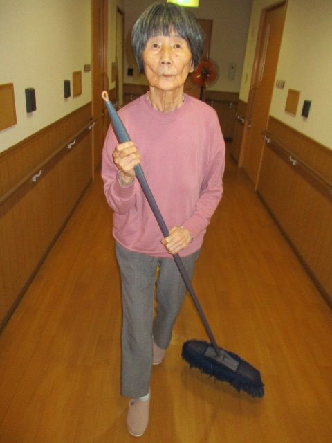 お昼ご飯が終わってしばらく経ったころ、スタッフが床掃除をしているとにっこりと微笑まれ眺めておられたので、運動がてらご利用者様にも手伝っていただきました(*^-^*)床はピカピカ✨になりました‼