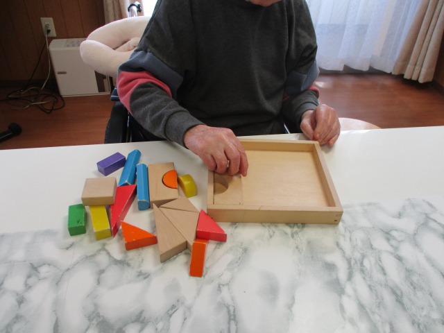 おやつ召し上がった後に、脳トレの一つとして、パズルをしてもらいました!(^^)!