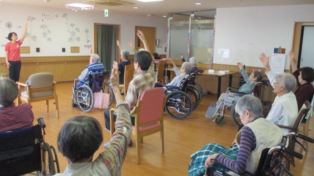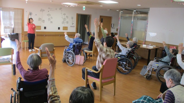 お昼ごはんも終わり、さあどうしようかな(・・?と思っているとご入居者様から「体操でもしようか~!!」と元気なご提案がありました(⋈◍>◡<◍)。✧♡